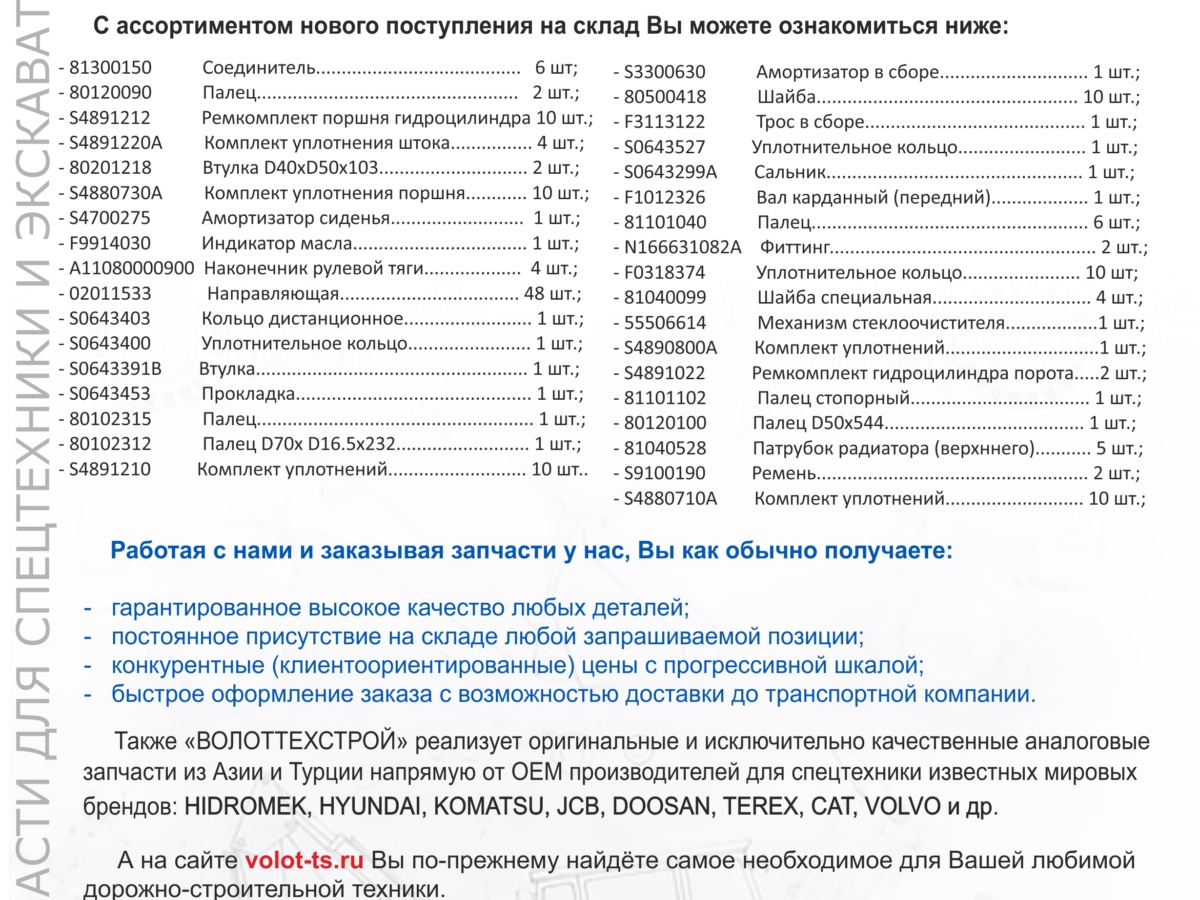 Сообщаем Вам о мартовском поступлении на наш склад запасных частей от HIDROMEK: